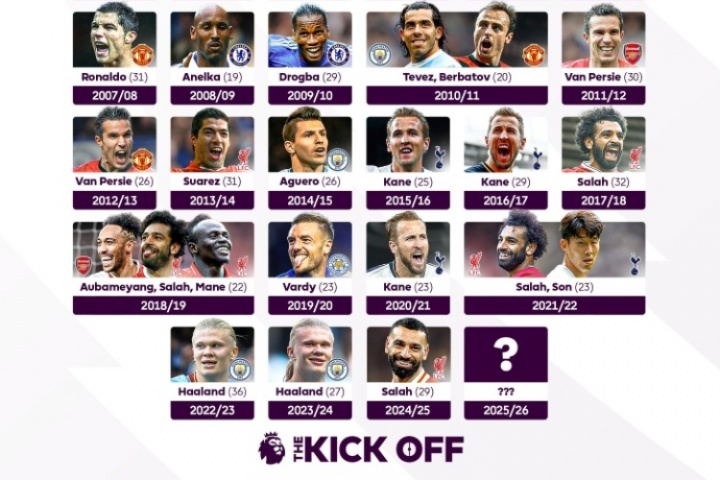 历年英超金靴得主